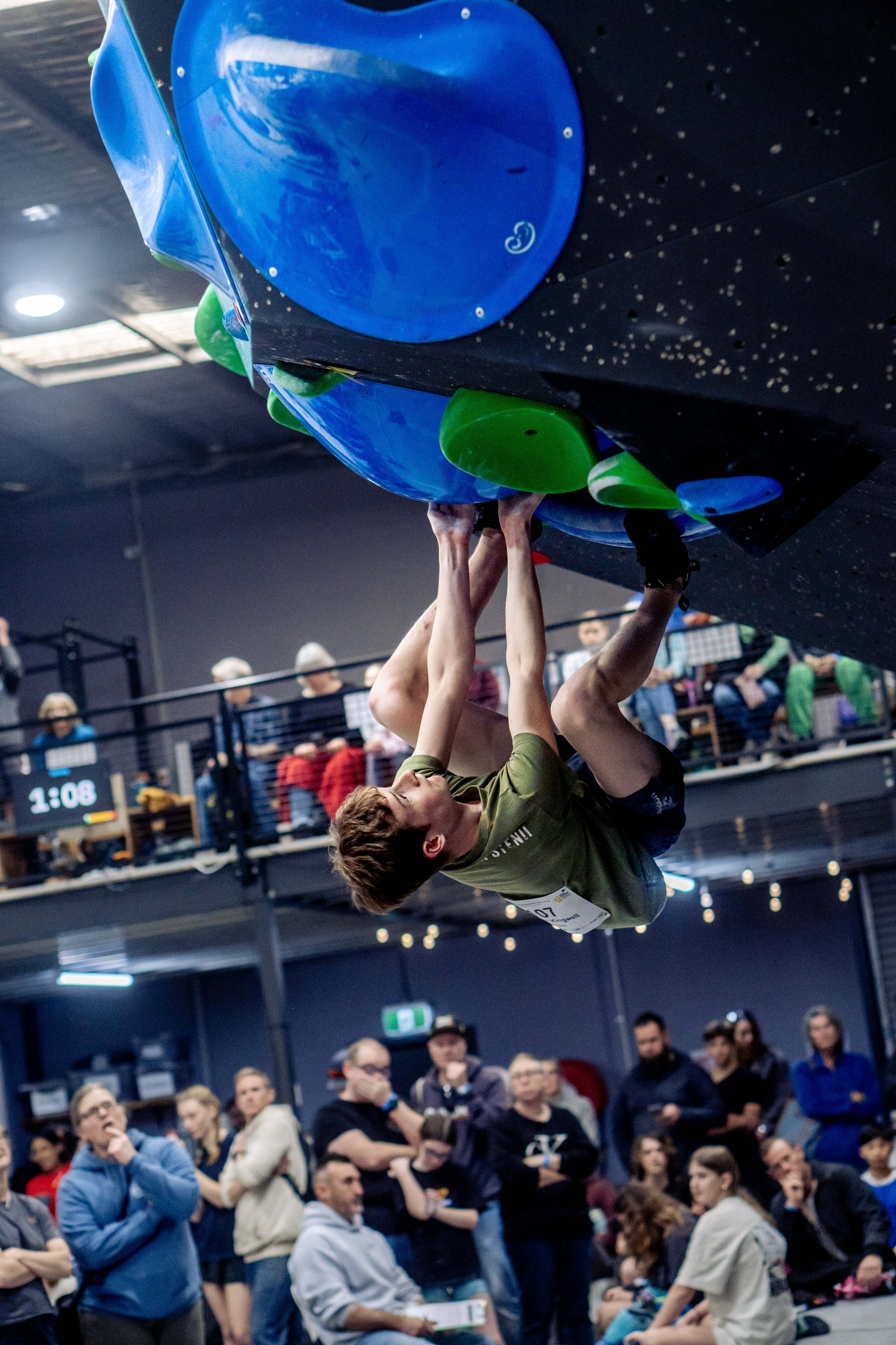 An explosive performance on routes (problems) with a maximum height of 4 metres and safety mats below. The athlete who solves the most problems in the lowest number of attempts wins.